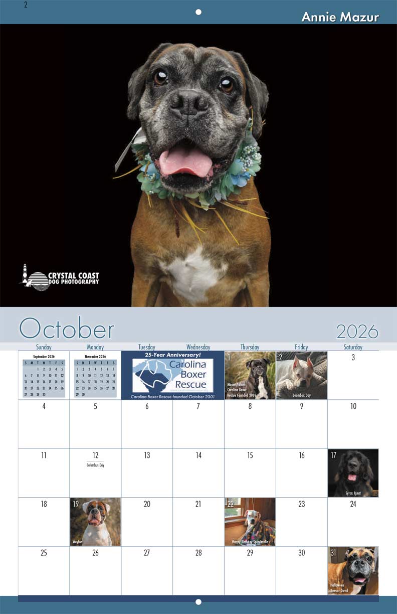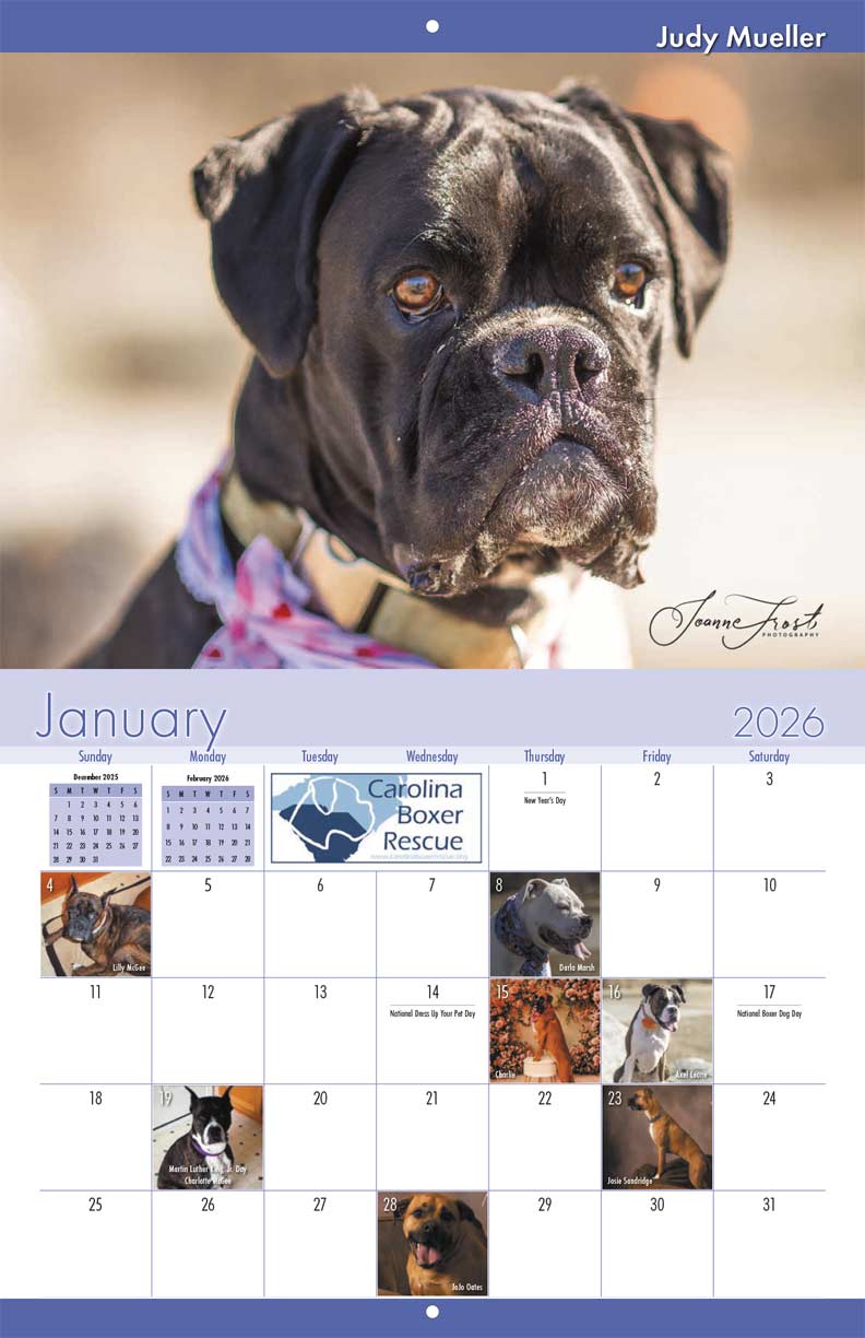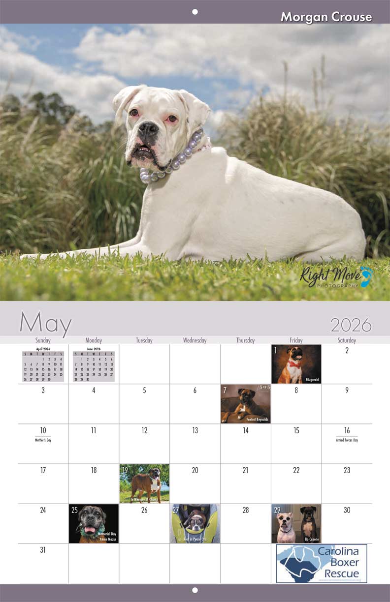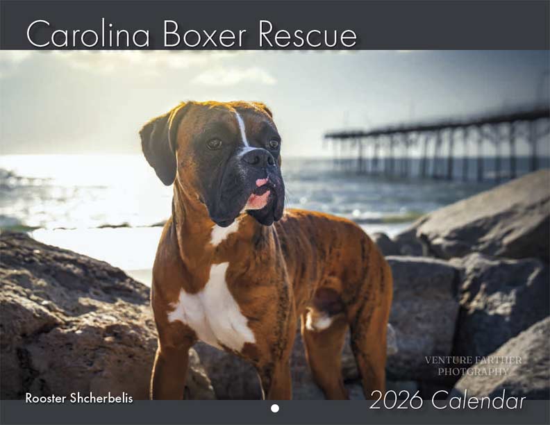 Pre-sale is now open for the 2026 Annual Carolina Boxer Rescue Calendar. Carolina Boxer Rescue was established 24 years ago, and we now rescue boxers in NC, SC, VA and GA. All proceeds from this calendar are used to help approximately 300 boxers per year. Thank you for your support!