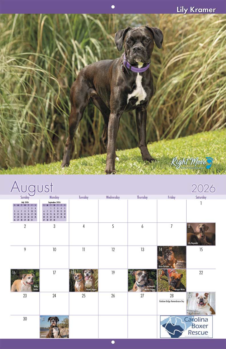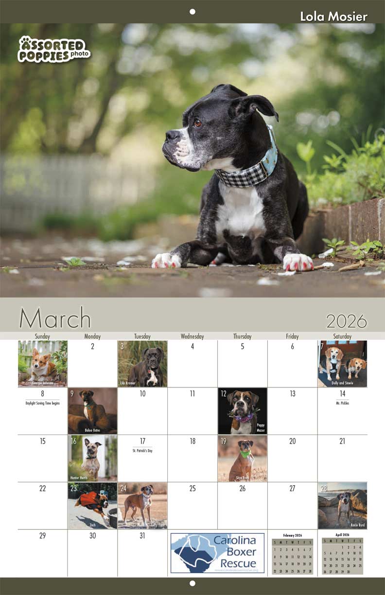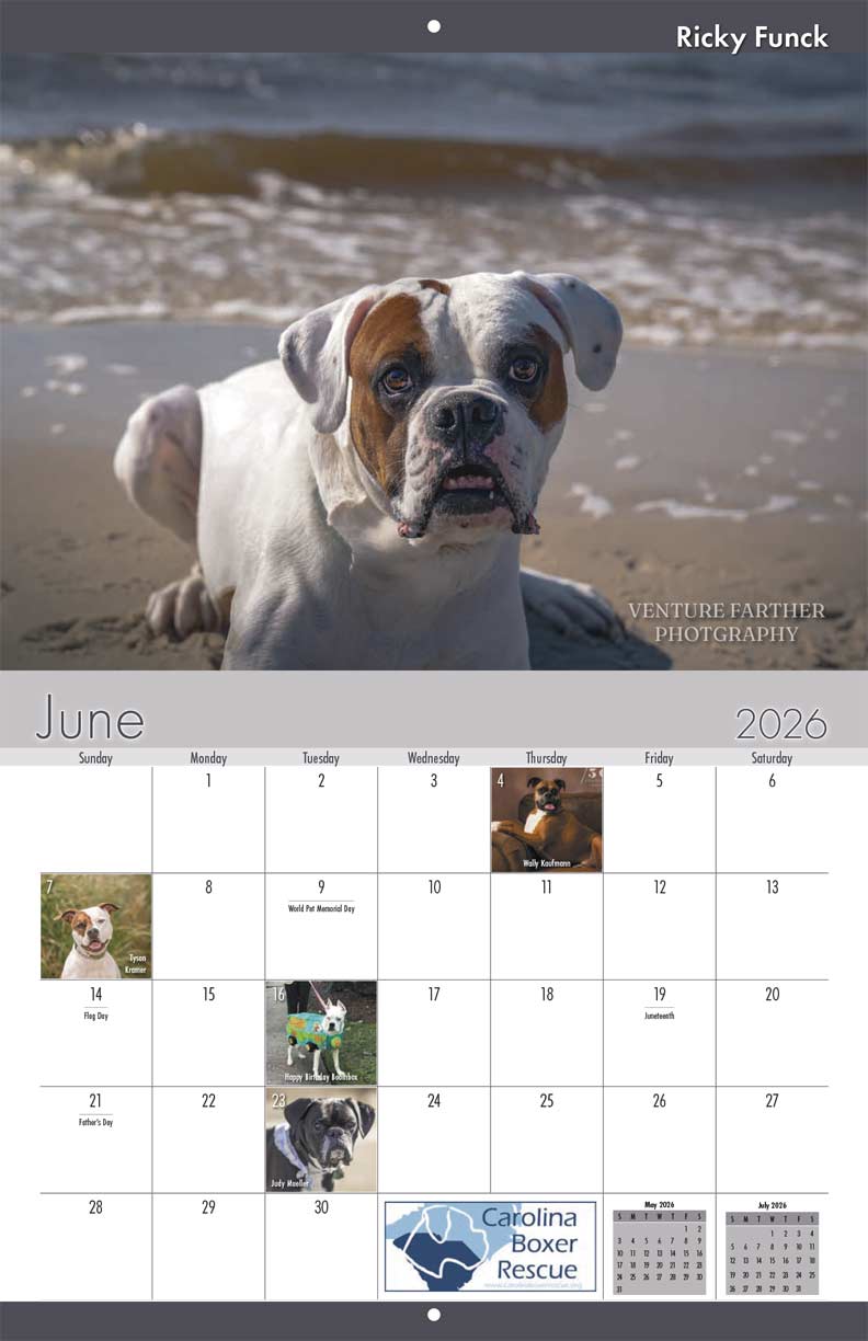 Pre-sale is now open for the 2026 Annual Carolina Boxer Rescue Calendar. Carolina Boxer Rescue was established 24 years ago, and we now rescue boxers in NC, SC, VA and GA. All proceeds from this calendar are used to help approximately 300 boxers per year. Thank you for your support!