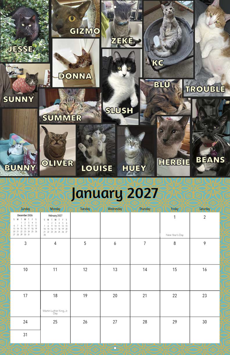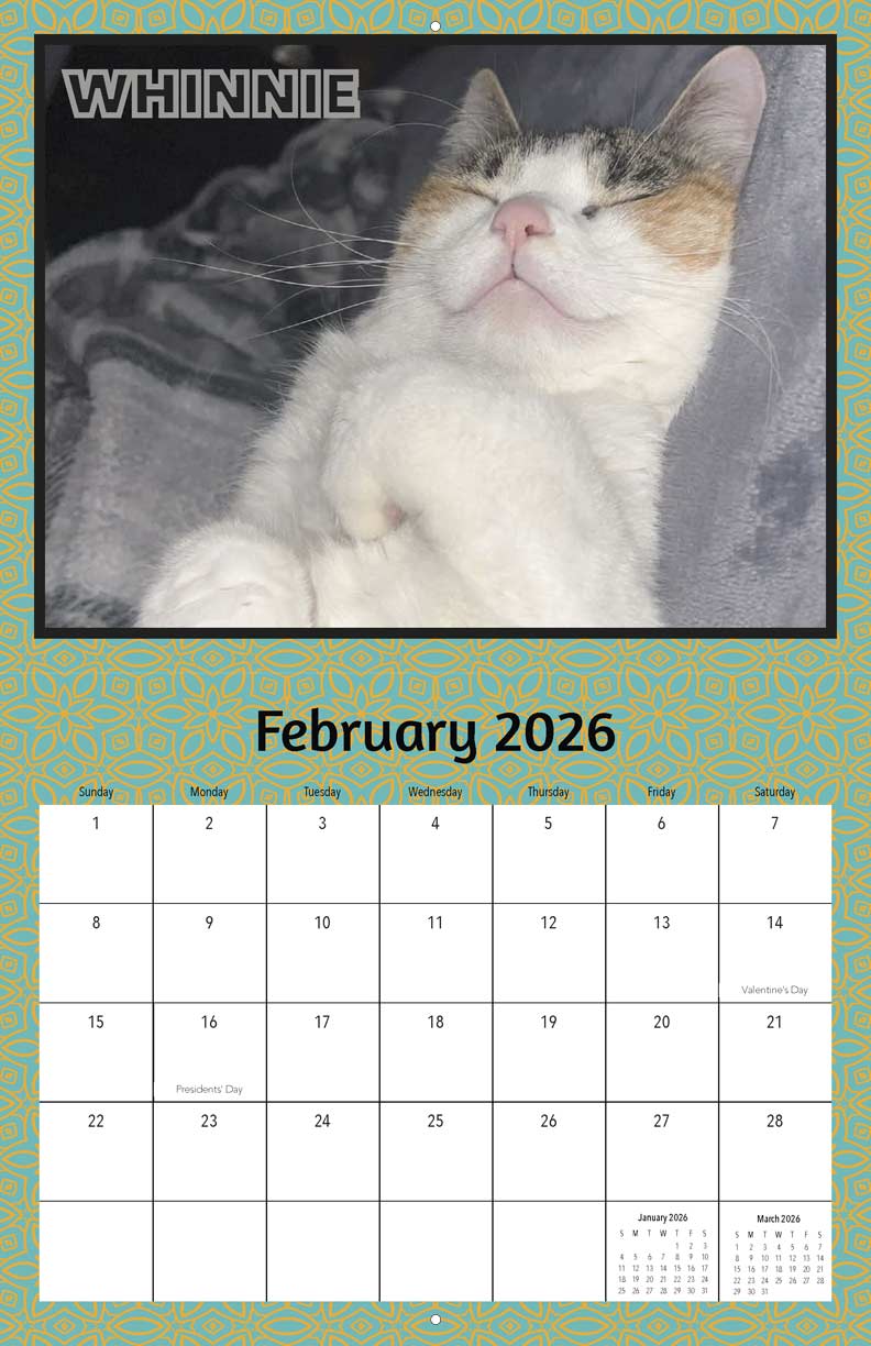 This beautiful calendar features 48 cats and kittens from throughout Crawford County, IA -- some of which were adopted from CCHappyCats, Inc! We are a 501(c)3 non-profit organization specializing in the care of cats and kittens in Crawford County -- we assist residents with Low-Cost Spay/Neuter programs, TNR, and adoption.