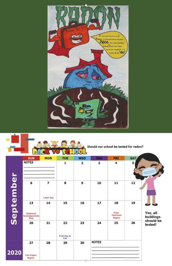 Illustrated with children's artwork and full of valuable information, this 2020-2021 school-year calendar boosts awareness of the risks of radon exposure. Developed by Citizens for Radioactive Radon Reduction, 501(c)3 nonprofit organization with a purpose to assist, encourage, and prepare advocates in making a difference with awareness, education and action against radioactive radon gas exposure.