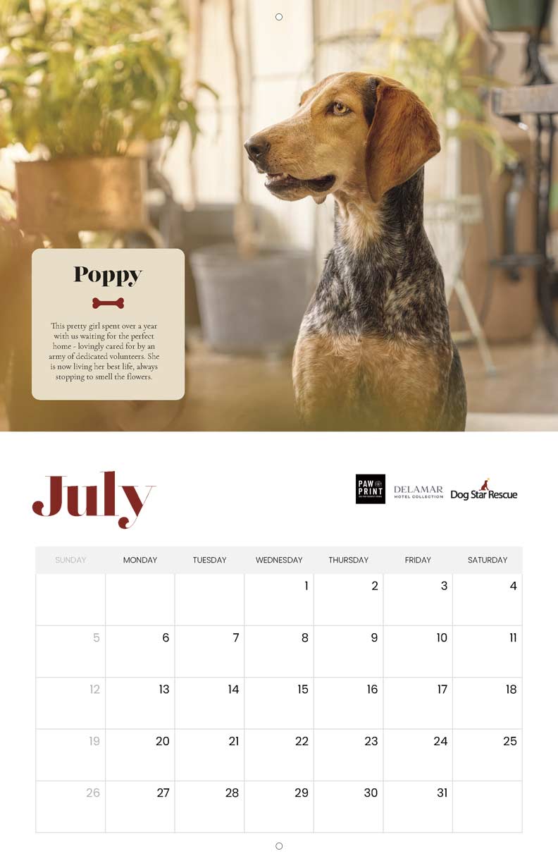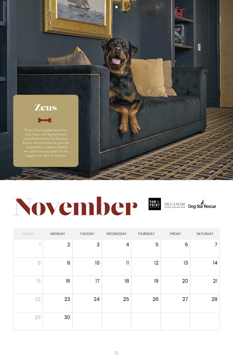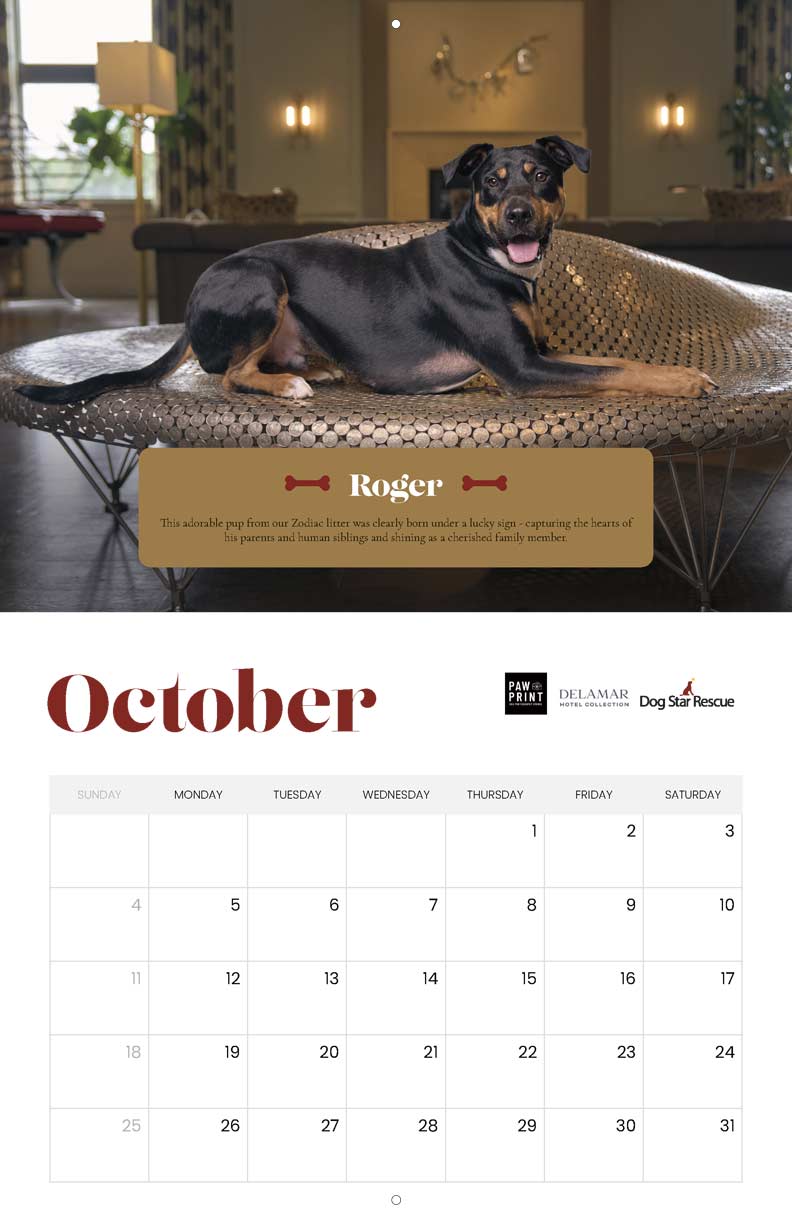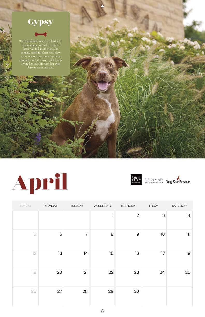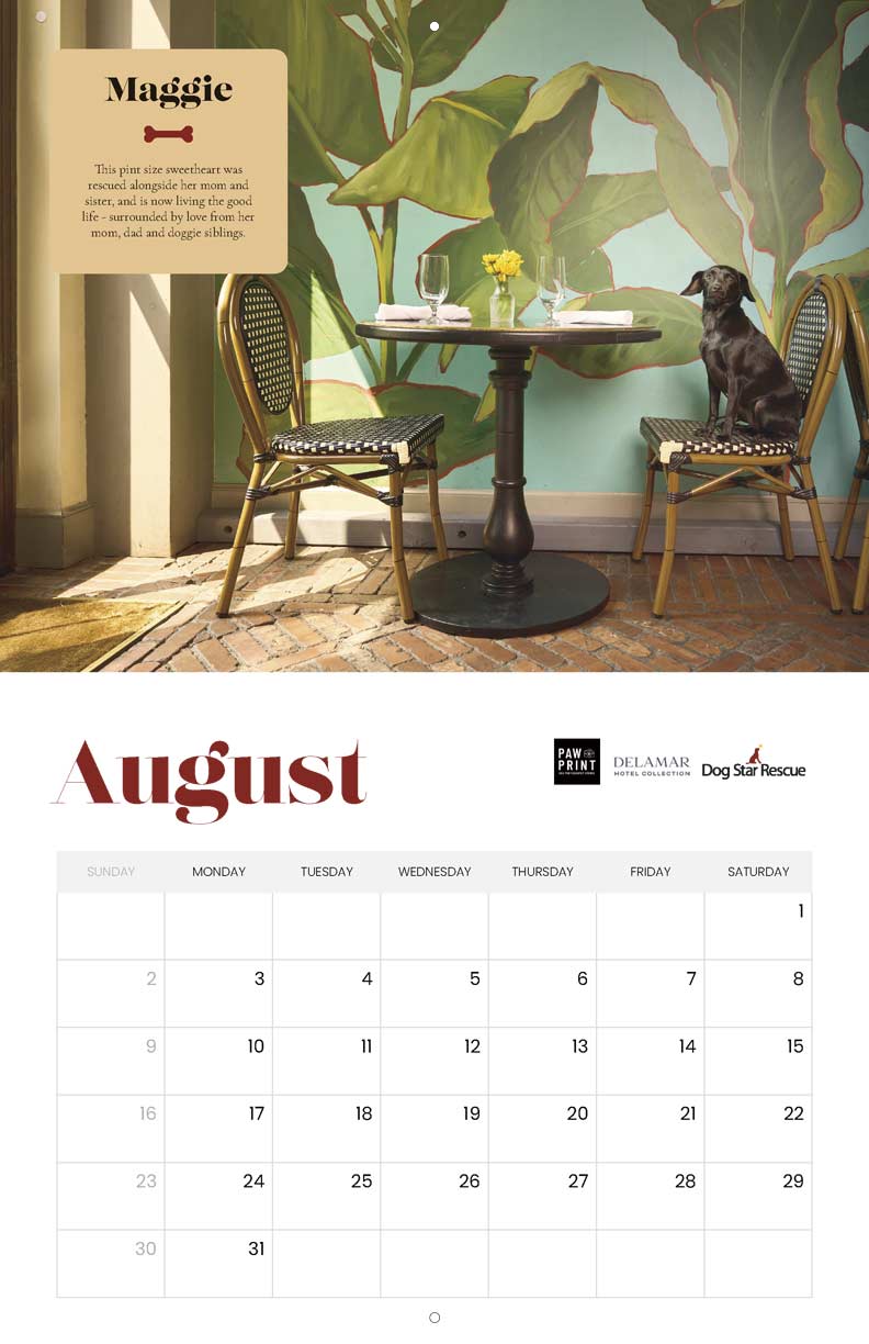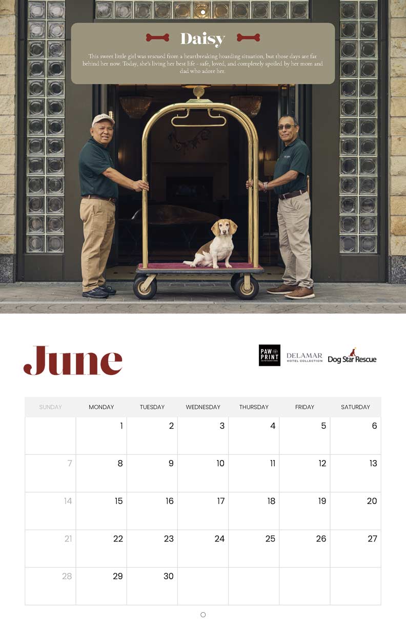 This 2026 Dog Star Rescue calendar features some of our thousands of treasured alumni, whose pawrents raised money for our rescue for a chance to be featured. All locations are at the luxurious Delamar Hotel in West Hartford CT, and all photographs were taken by the very talented Paw Print Studio. 100% of proceeds from this calendar's sales help support Dog Star Rescue, a non-profit, all-volunteer rescue, who has placed over 7,000 stray, abandoned, and surrendered dogs into loving, forever homes.