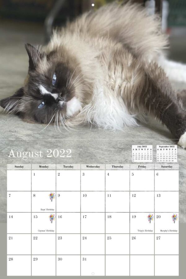 This beautiful 9″ x 12″ calendar features photos of Ragdoll cats striking all their best poses! Calendar sales support Floppycats.com, the most trusted Ragdoll cat blog, uniting Ragdoll cat lovers worldwide since 2008.