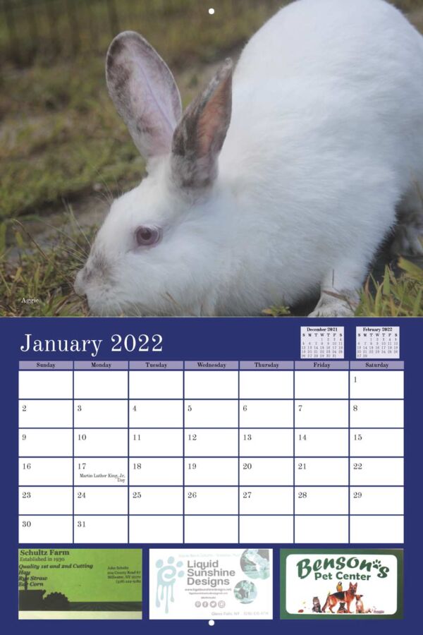 This beautiful 9″ x 12″ calendar features many of your furry friends at Hop on Home Rabbit Sanctuary, a 501(c)3 nonprofit located in Saratoga county, New York focused on helping rabbits in need. We will help any domestic rabbit.