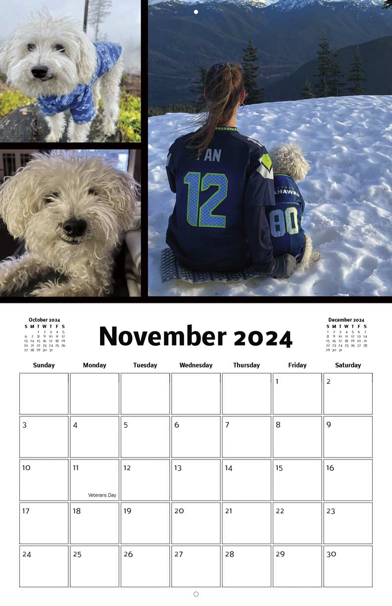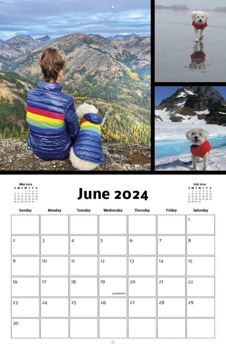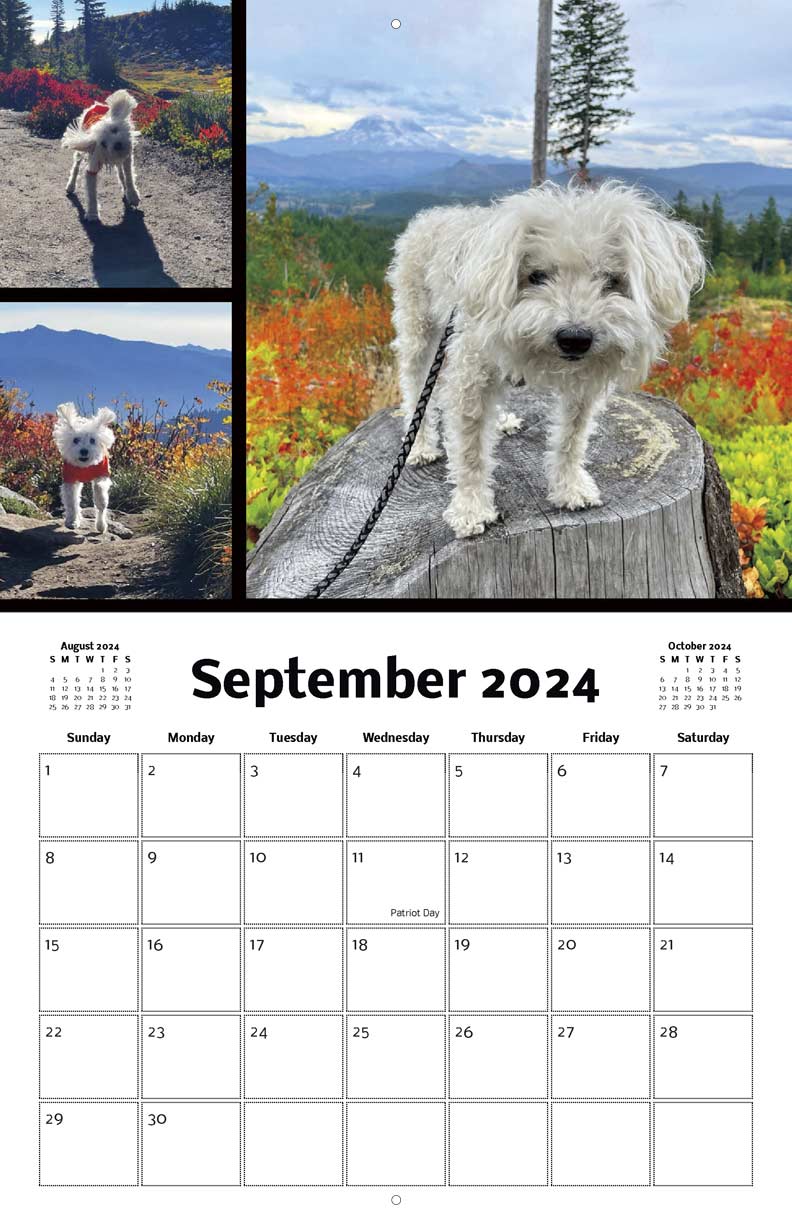 This 8.5" x 11" wall calendar is a tribute to Largent the Adventure Dog. Proceeds from calendar sales will go to registered 501(c) non-profit Animal Rescue Groups.