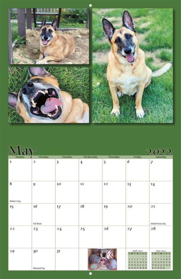 All proceeds from the sale of this 8.5" x 11" wall calendar support The Malinois Ranch Rescue, an organization dedicated to rescuing, evaluating, rehabilitating and rehoming Belgian Malinois and Dutch Shepherds.