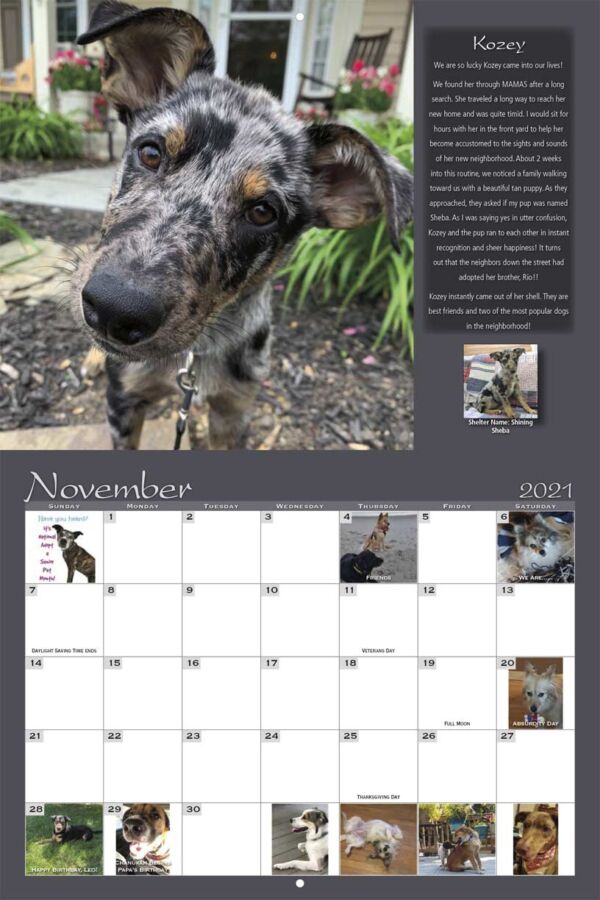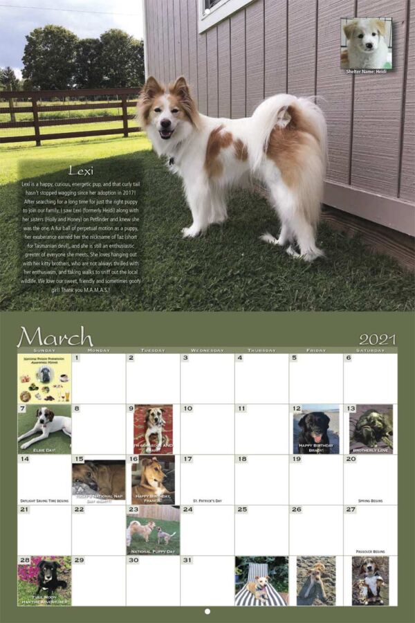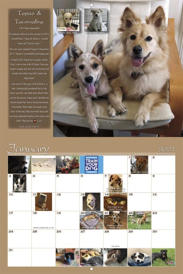 All proceeds from the sale of this calendar support the Mary Ann Morris Animal Society (M.A.M.A.S.), a private 501c3 nonprofit shelter/rescue formed in 2001 by a small group of local people concerned about animal welfare in Bamberg County, South Carolina and beyond.