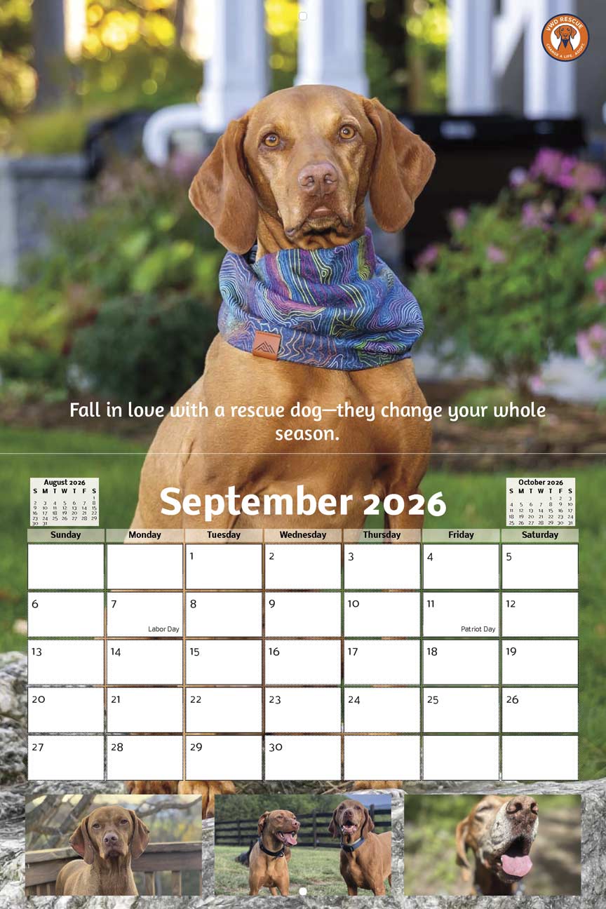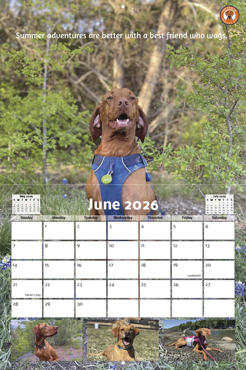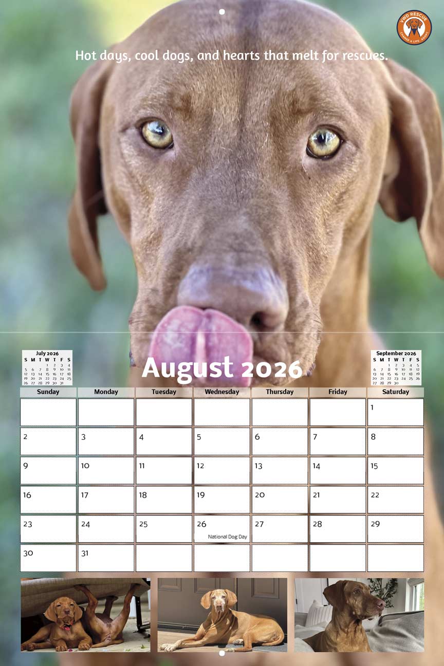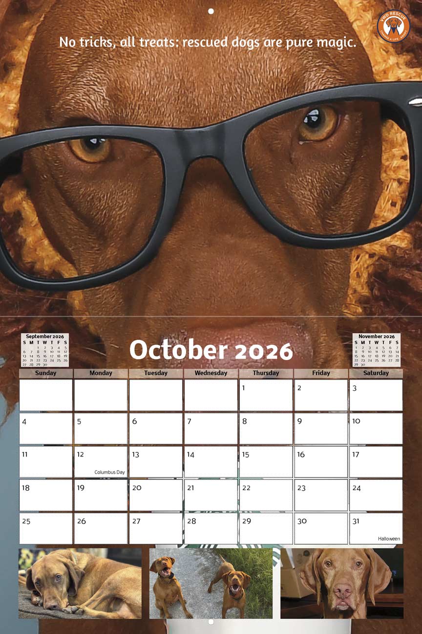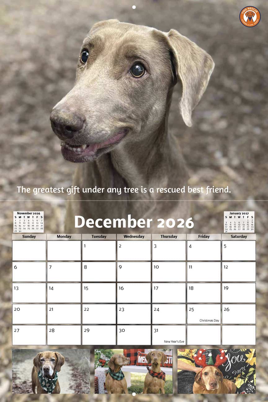 Every calendar you purchase helps us provide support, and care for our rescues, and we couldn’t make it happen without the amazing people who’ve shared their wonderful dog photos! We’re beyond grateful for all the submissions, encouragement, and support. Thanks to you, each month on your new calendar is a celebration of rescue, community, and the simple joy dogs bring into our lives.