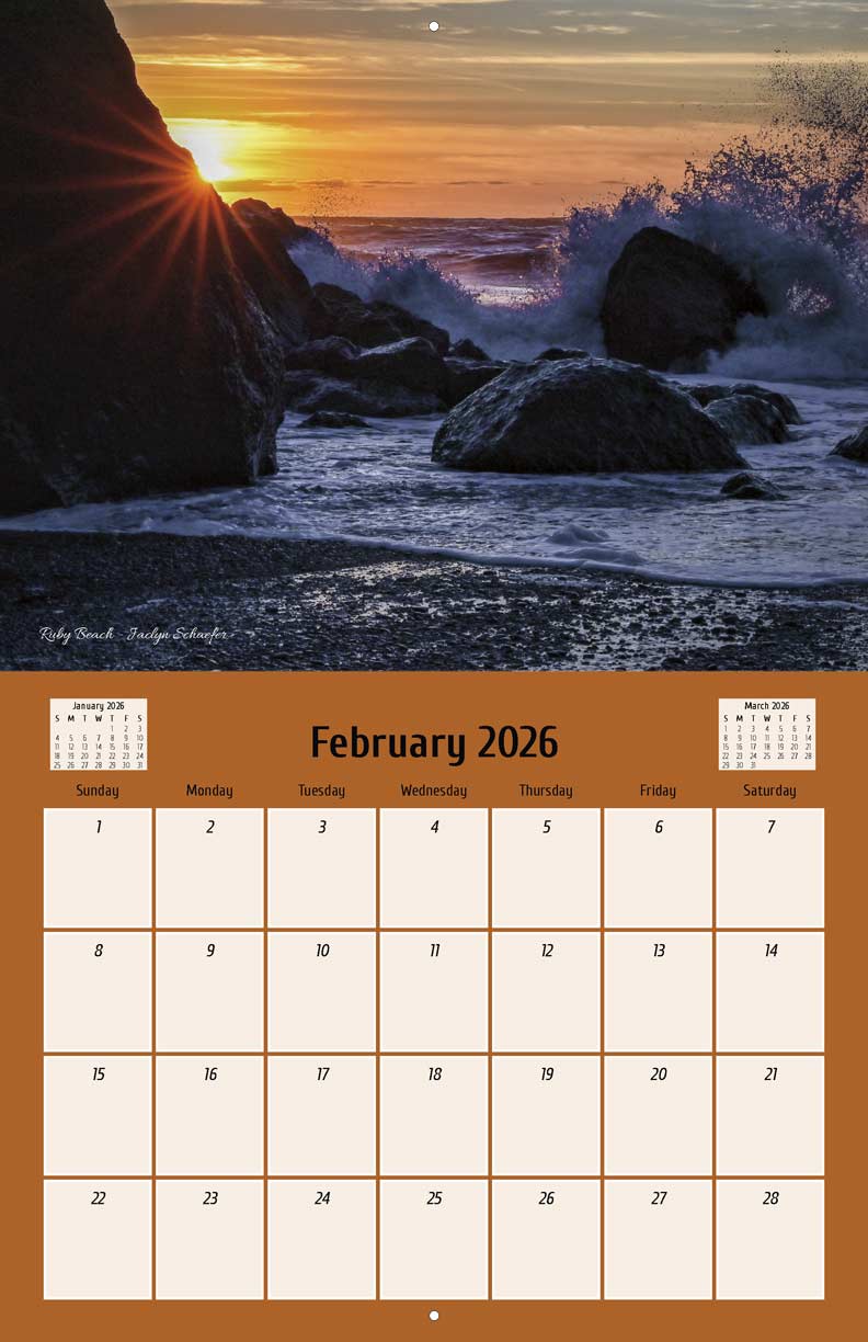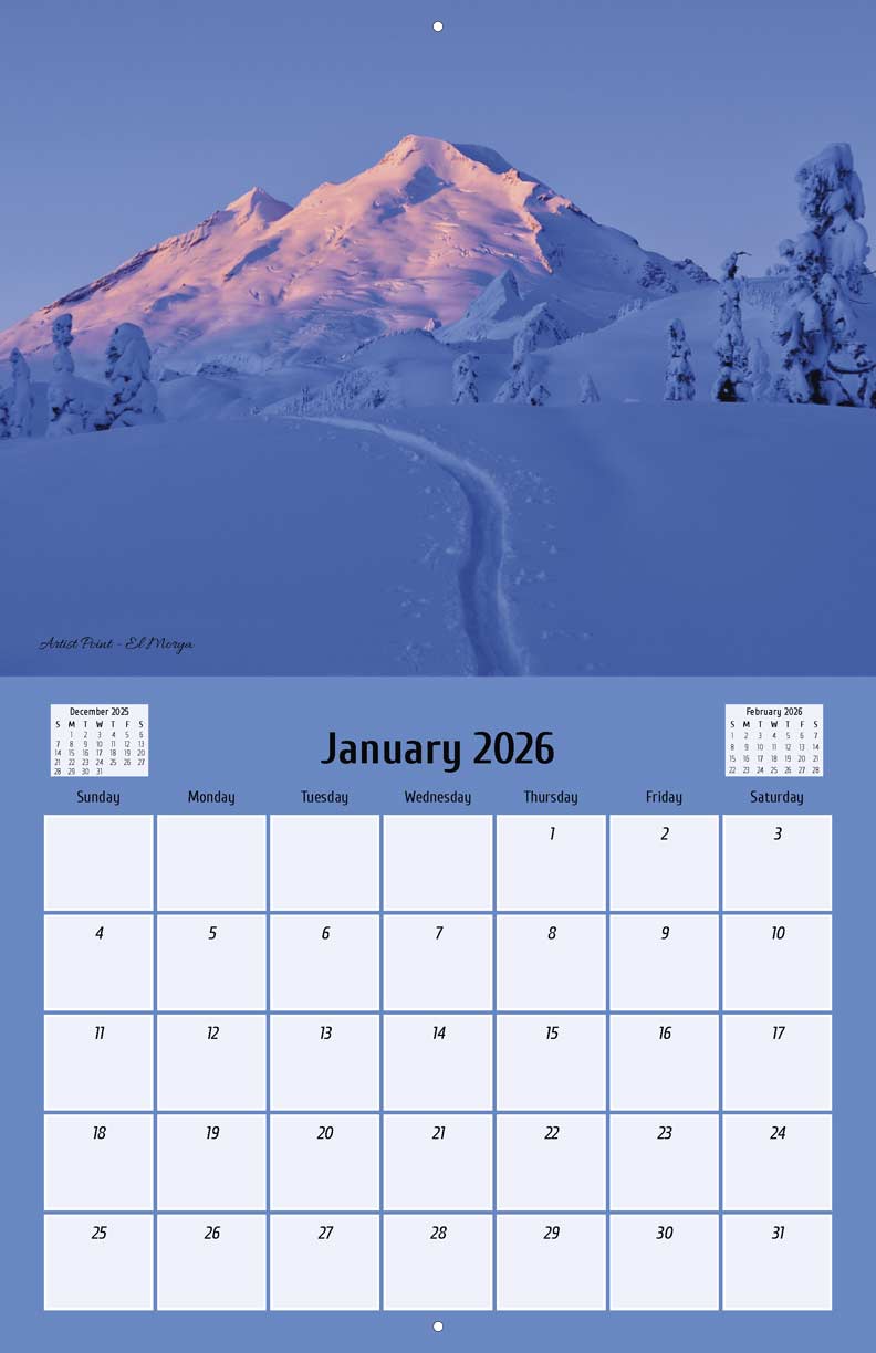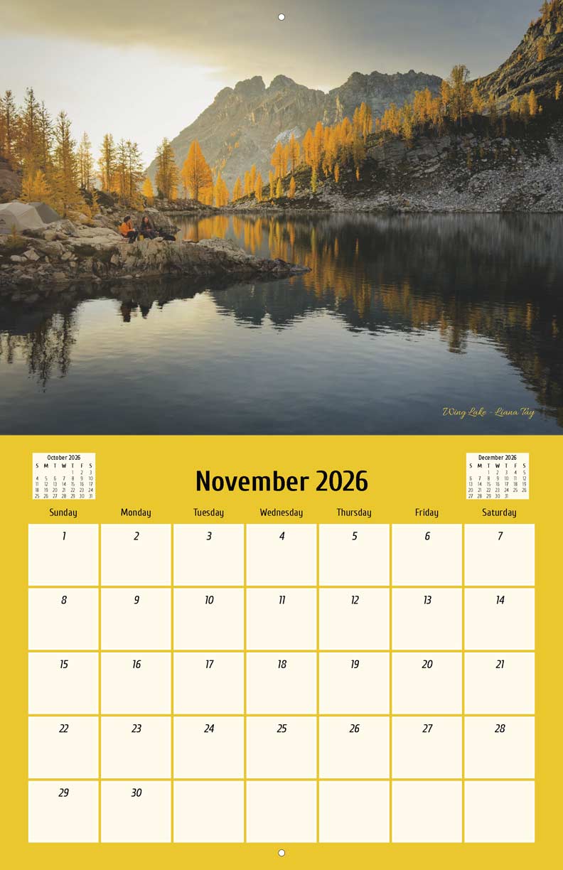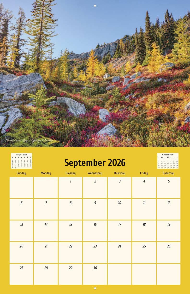 This beautiful 8.5"x11" wall calendar features stunning photos of Washington State's incredible backcountry selected by members of the Washington Hikers and Climbers group. Net proceeds will be donated to various Search and Rescue organizations throughout Washington state.