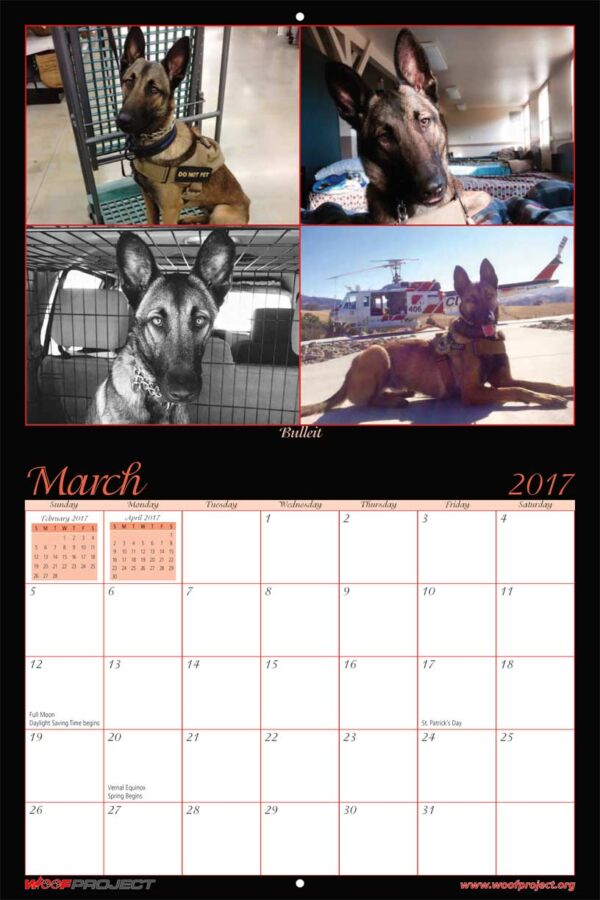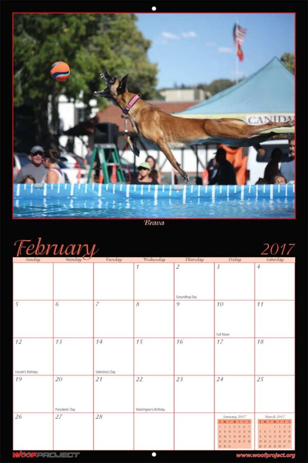 All proceeds from the sale of this 8-1/2″ x 11″ calendar support Woof Project Rescue, a 501(c)3 nonprofit corporation consisting of a small number of hard working volunteers dedicated to caring for and placing Belgian Malinois into permanent and loving homes on the West Coast. Woof Project Rescue operates in Washington, Oregon, California, Idaho and Nevada.